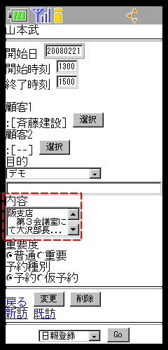 スケジュール変更画面の「内容」項目にも表示データサイズの設定は適用されます。