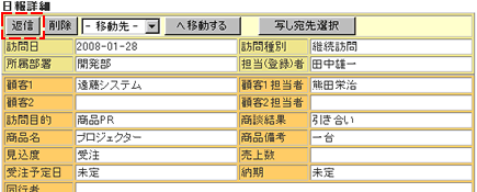 [訪問日]欄の日付をクリックすると、「日報詳細」画面が表示されます。