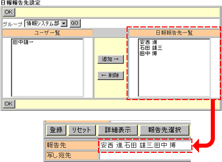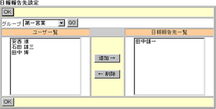 日報報告先に表示するユーザーを選択します。