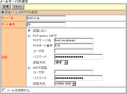 「メールサーバの設定」をPOPberoreSMTP、SMTP認証に対応しました。