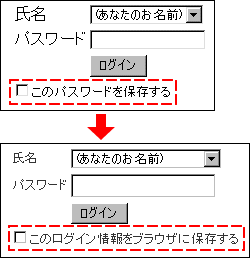 画面下部に「ログイン情報の保存」項目が追加されています。