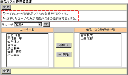 「管理者」レベルのユーザであると、他のユーザのデータをメンテナンスやすることが可能となります。