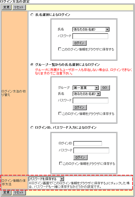 画面下部に「ログイン情報の保存」項目が追加されています。